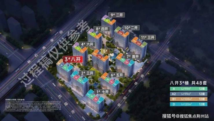 面积:99㎡A和A2户型合计24套、108㎡12套、120㎡12套,共计48套。