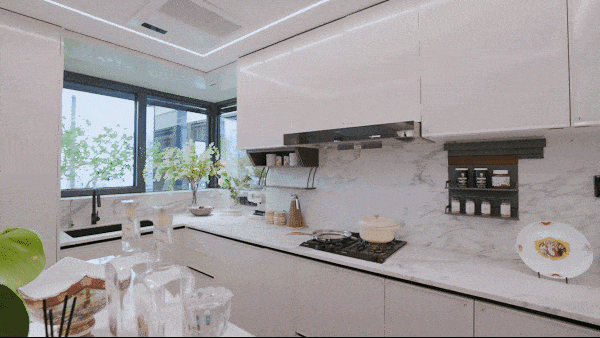 厨房排烟系统通过嘉格纳大风量油烟机、大金空调双重滤网及中央排烟系统三重保障,解决油烟困扰。照明采用Ra≥90显色指数灯具与灯带,还原食材本色;静音设计涵盖低噪厨电、同层排水、缓冲阻尼及中央排烟降噪技术,营造安静烹饪环境。