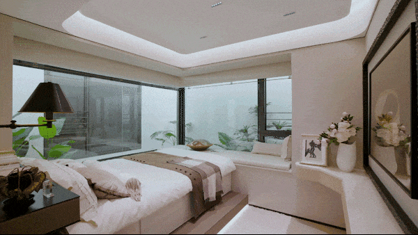 主卧转角飘窗,清晨咖啡,夜晚小酌,坐拥270°流动风景,私享片刻宁静;