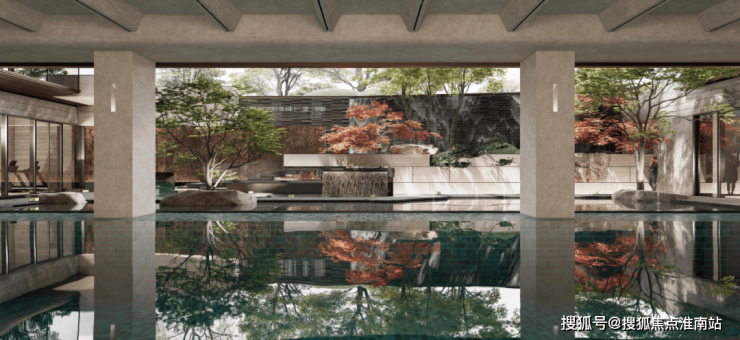 「国贸海上原墅」提取《富林十景》山、水、茶、酒、舟、市等符号,融入当代设计与项目场景,从归家门庭、叠水园境,到下沉庭院、生活会所,徐徐展开江南水岸的世内桃源。