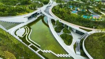 社区景观设计上,设置一轴五象五巷五色两谷乐活的景观空间,五进式空间体验,打造东方礼序的归家仪式感。