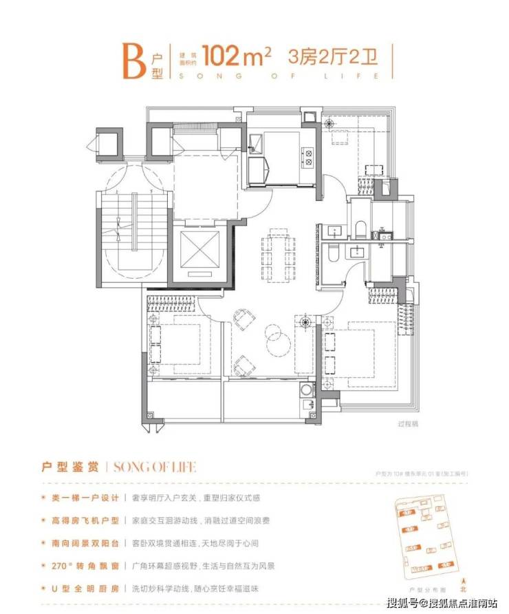 高得房率的飞机户型减少过道浪费,餐厅空间比同面积段户型更阔绰,家庭聚餐更显从容;双卫均带飘窗,洗漱时也能沐浴阳光;南北双270°环幕视野,通风采光俱佳,适合追求生活品质的年轻改善家庭。