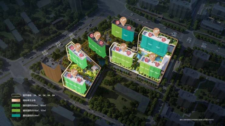 2号楼:位于整个地块最南侧,采光无敌,北边就是社区景观长廊和大面积水院,推开窗就是水景和绿化,安静、通透、视野干净。