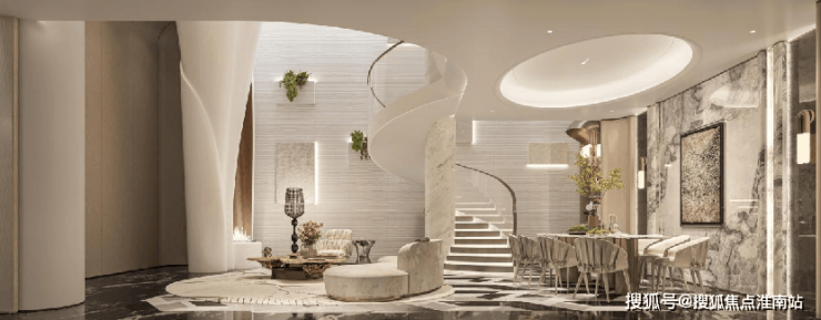 走进约 258㎡联排样板间,便能感受到空间的阔绰与尊崇:一层约3.6m层高,让室内空间尽显通透,告别压抑;客厅大面宽设计,让阳光与园林景观自然入户,将窗外风光化作室内画卷。