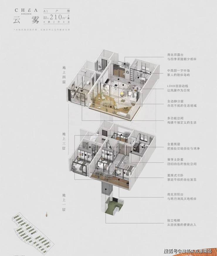 ☝中海·月陇云岚210㎡「云雾」室内空间示意图