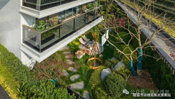 以中间套下叠“旗枪”户型为例,利用地势高差做了下沉式庭院,由于是坡地地形,所以即便是地下空间,也有大面采光;二楼则设计了挑出露台,拥有大面积室外空间。