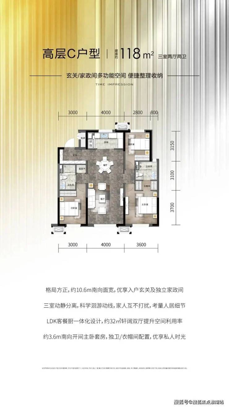而建面约115平3+1房,简直可以治好三代同堂或二胎家庭的焦虑,实现一步到位,每