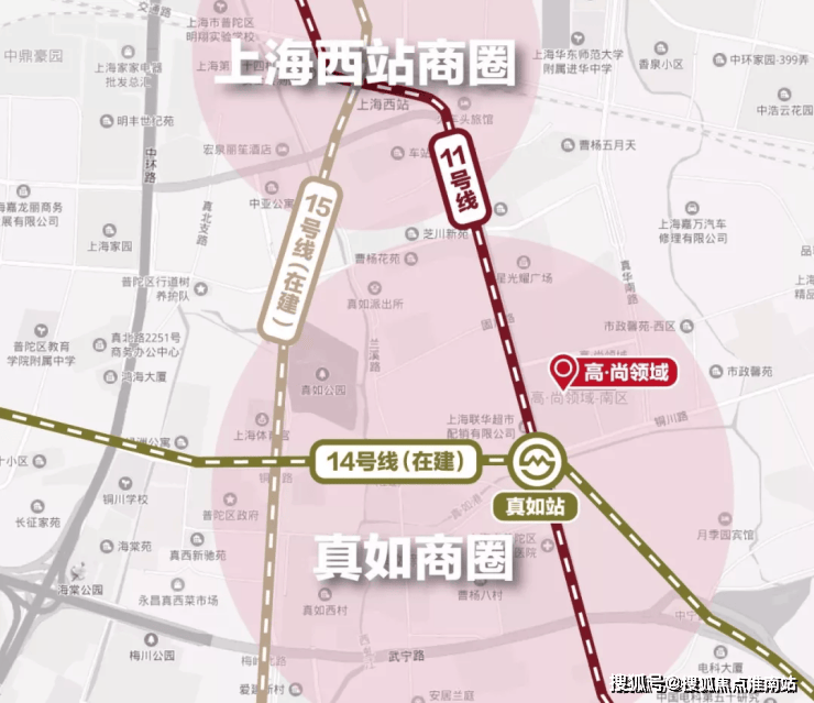 高尚领域地理位置非常优越,位于真如板块曹杨路铜川路交界,是11号线及在建中14号线双线地铁上盖项目。
