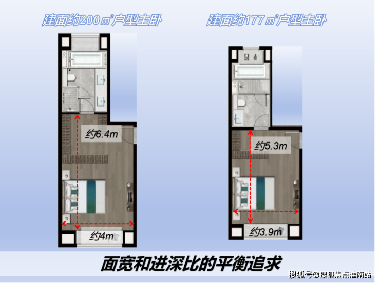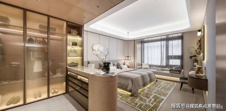 同时每个户型主卧均为宽奢套房设计,我们来看根本不够抢的 约200㎡洋房大平层的主卧:
