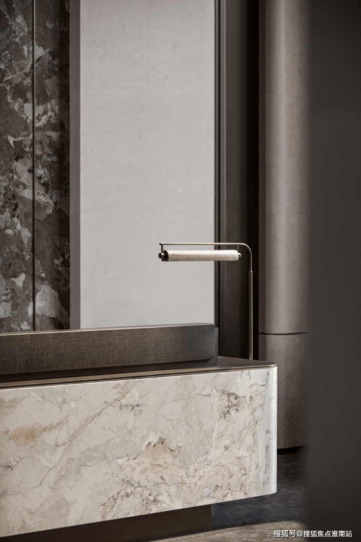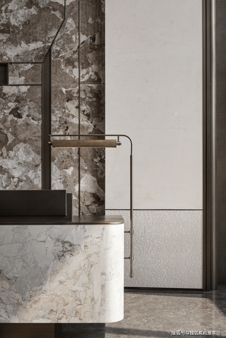黑白灰石材仿佛是大师的画笔,在空间中勾勒出典雅而独特的线条,古铜色