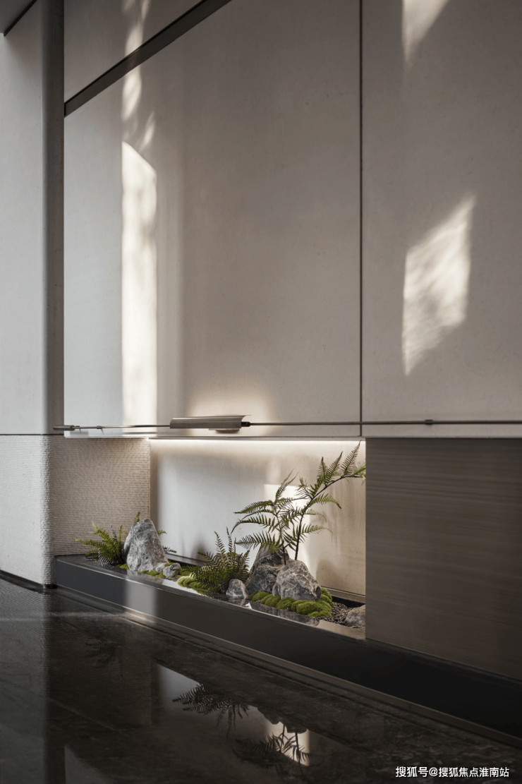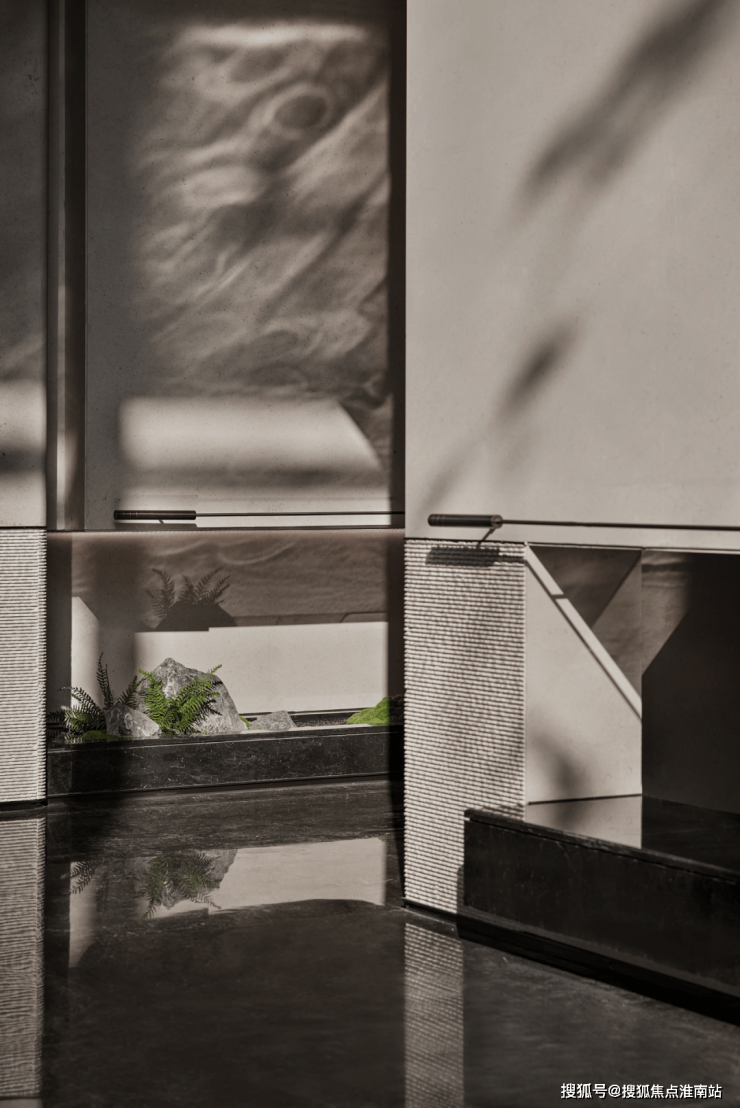 石材与金属深浅穿插,弧角和硬朗线条体块强烈对比,仿佛生命力在涌动,