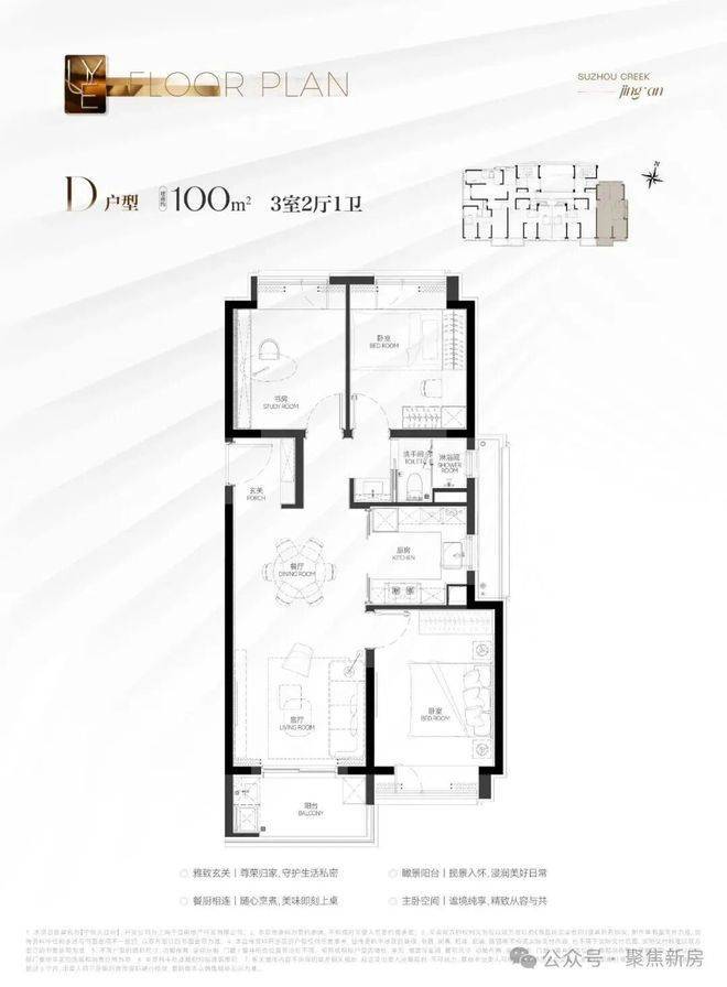 建面约100㎡3房户型