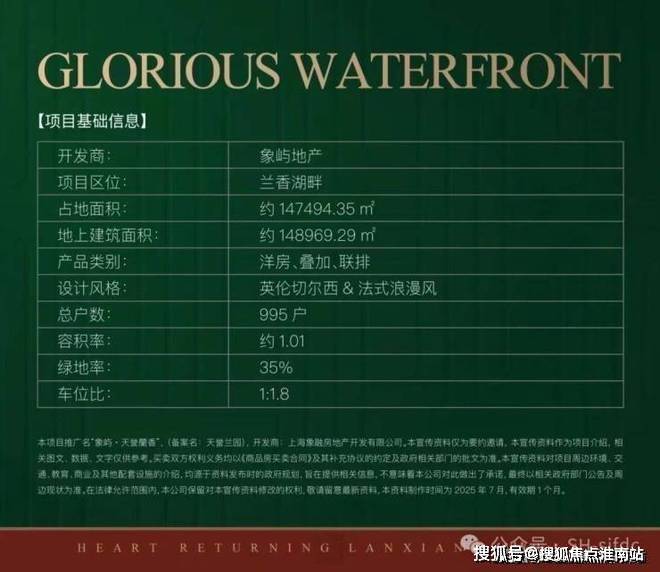 象屿今年3月砸66.79亿拿下兰香湖东北侧宝藏地块,容积率仅1.01(上海主城十年难遇!),规划11层小洋房,全南向瞰湖视野!