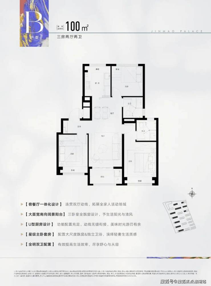 建面约100㎡3房2厅2卫户型