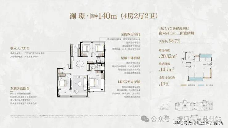 利用苏州改善新规红利,建发璟园在户型设计基础上将露台、挑高、阳台等赠送面积最大化——
