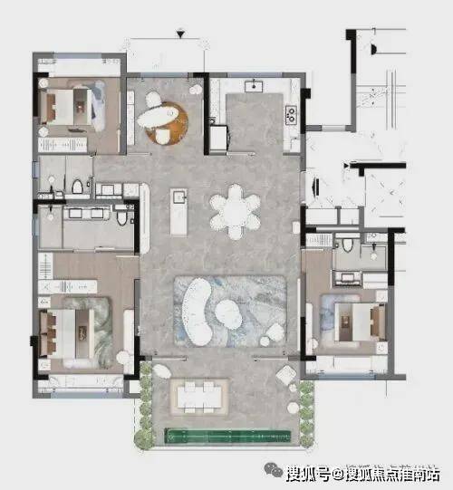 云阙户型建筑面积约120㎡ 三房两厅两卫超享尺度|约6m横厅布局|酒店级主卧套房|约17㎡露台花园|3+X灵动空间