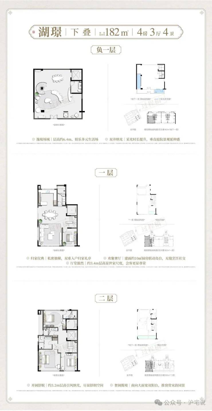 下叠产品 主打 “ 庭院+地下拓展 ” 的全能改善体验!南向入户庭院,归家仪式感拉满;一层餐客厅层高 3.4 米,地下室 6.4 米,空间拓展性极强