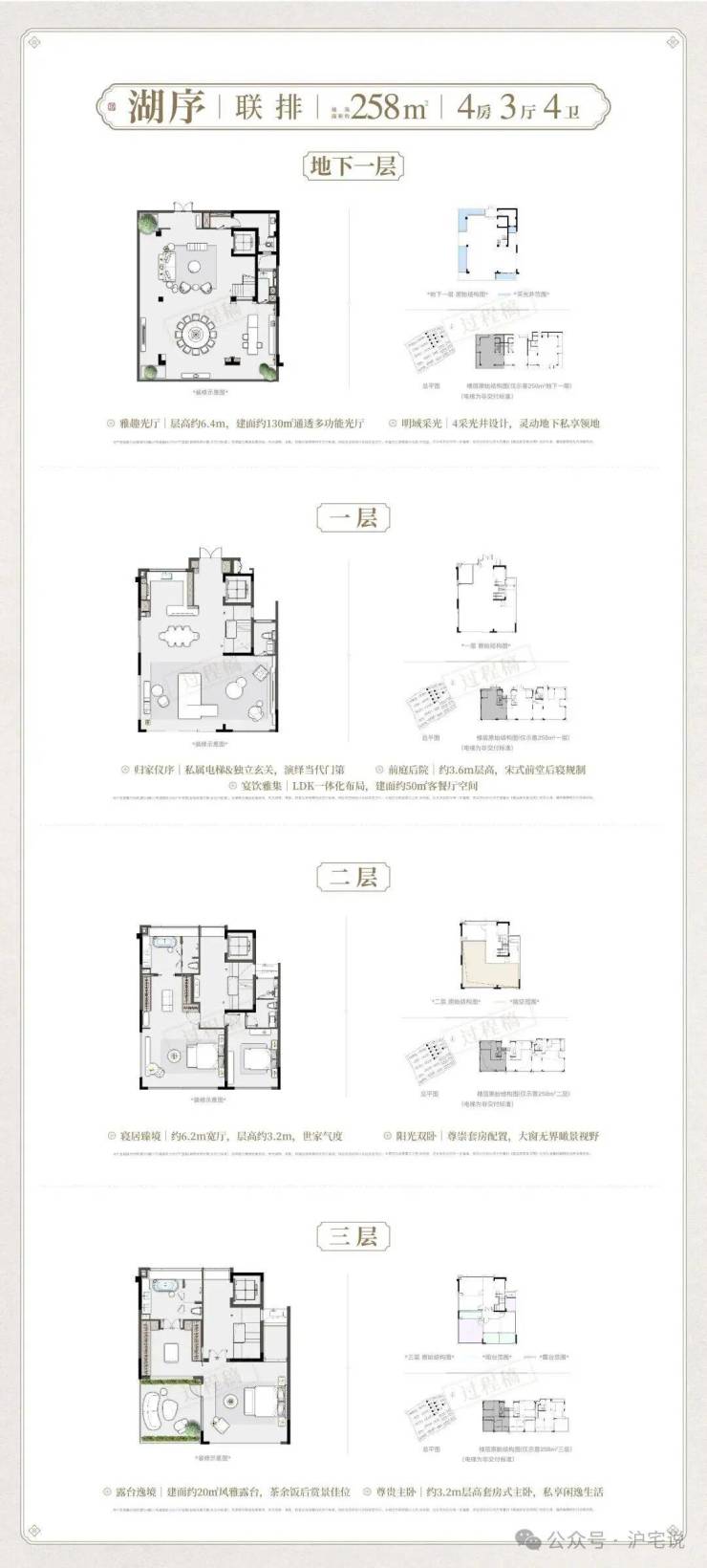 项目建面约 258-310㎡联排 与182-206㎡叠墅, 从外立面形制到空间尺度,以宋式美学为魂,融合现代居住需求