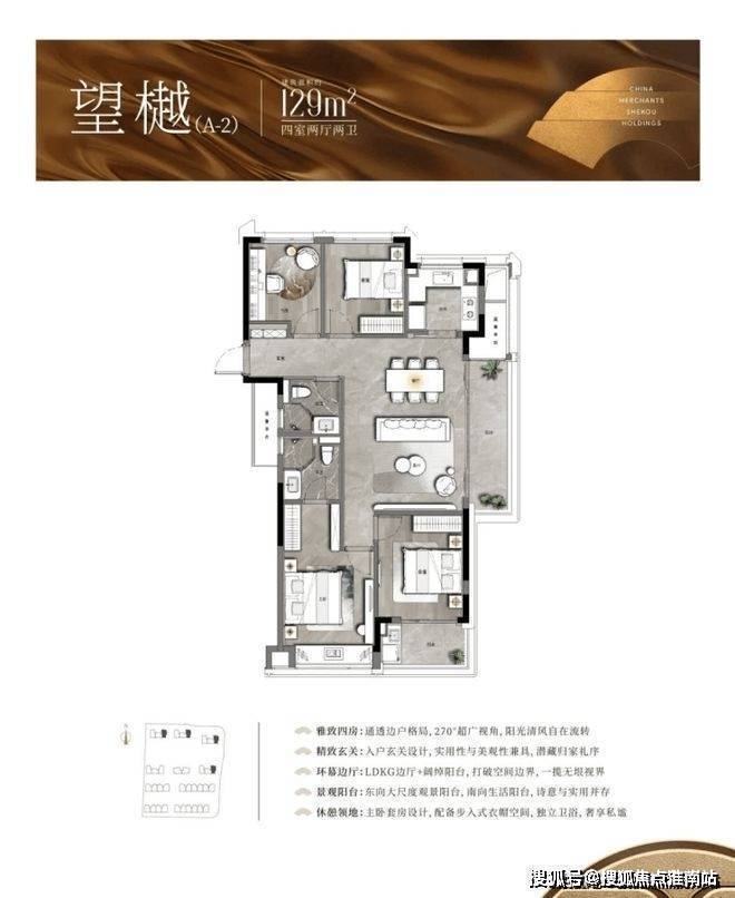 建面约129㎡四房两厅两卫:独立衣帽间+明厨明卫,功能性强