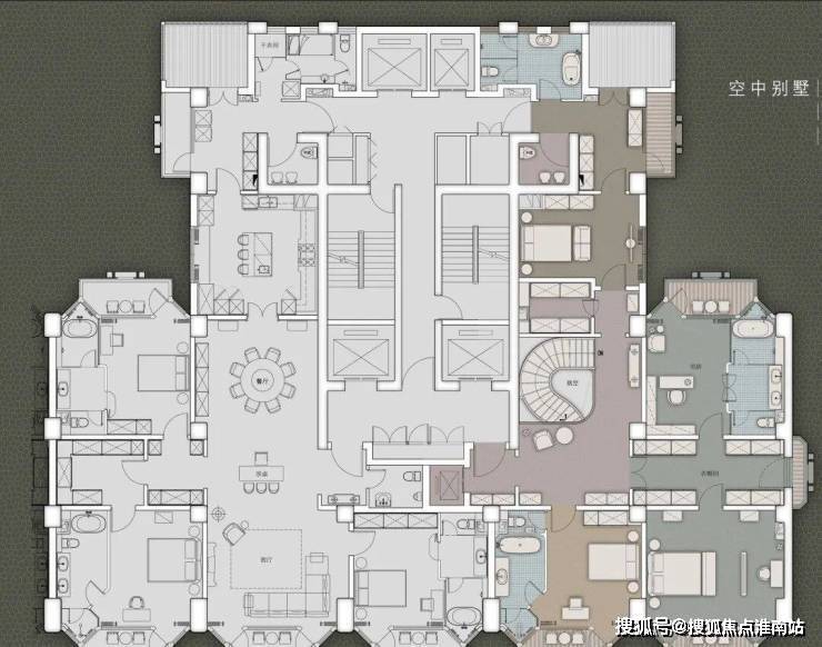 住宅部分全部大平层(复式)设计,单套面积约370-1500㎡,全部精装交付。