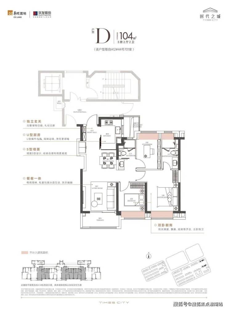 5、建面约104㎡3房户型,空间感与实用性兼备