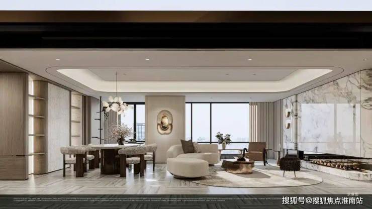 通过“S墙+4飘窗设计”释放灵动空间,餐客厅一体化消除传统走廊造成的空间浪费。