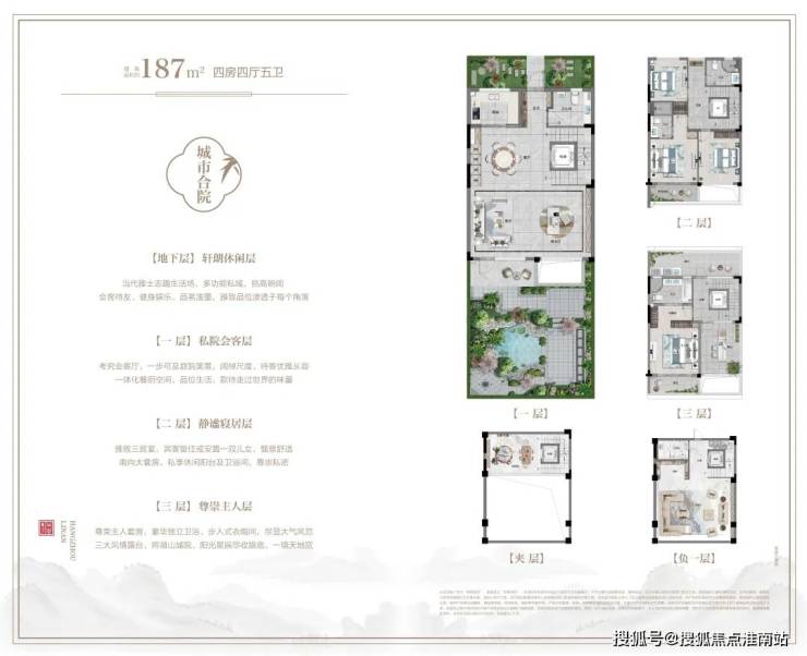 深谙尊贵人居之道,精研建筑面积约187—195㎡城市合院,敬献名门,约5.6米高阔绰地下室空间,开阖之间尽显世家门第之风,重新定义人生大境美好。