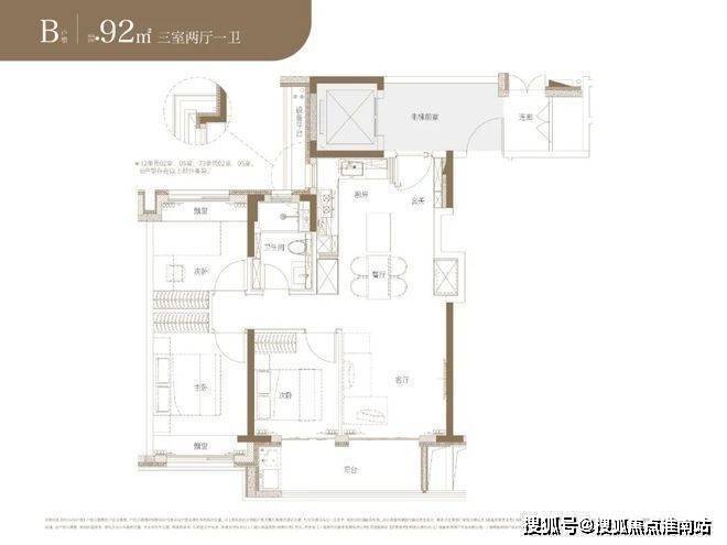 上海宝山四季隐秀售楼处电话☎:400-8567-334✔✔✔建面约92㎡3房2厅1卫,户型三开间朝南、再加上“2个飘窗+双联阳台”,不管是采光、视野、通风、私密性,还是实用性都十分出色。