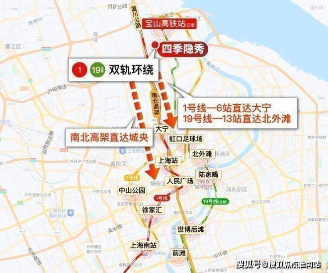 上海宝山四季隐秀售楼处电话☎:400-8567-334✔✔✔宝山站(在建)总开发规模约50万㎡,沪渝蓉铁路、沪苏通铁路二期及19号线(在建)等在此处汇集。(信息来源:上海发布公众号)