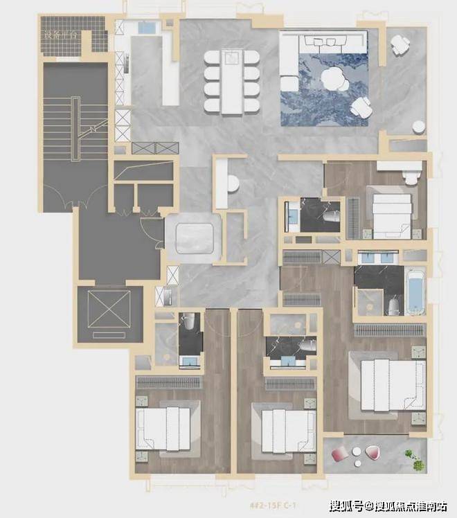 建面约193、237㎡为类一梯一户设计,拥独立门厅;建面约302㎡标配两梯一户,排面和仪式感全部All in。