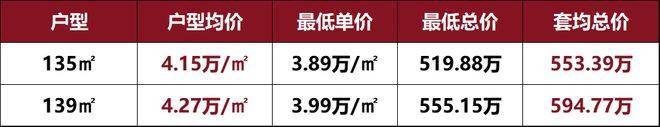 另外,建面约135㎡和建面约139㎡这两个户型的均价也仅约4.2万/㎡,相较与目前青浦新城的新房均价,也足足低了大约4000元/㎡;