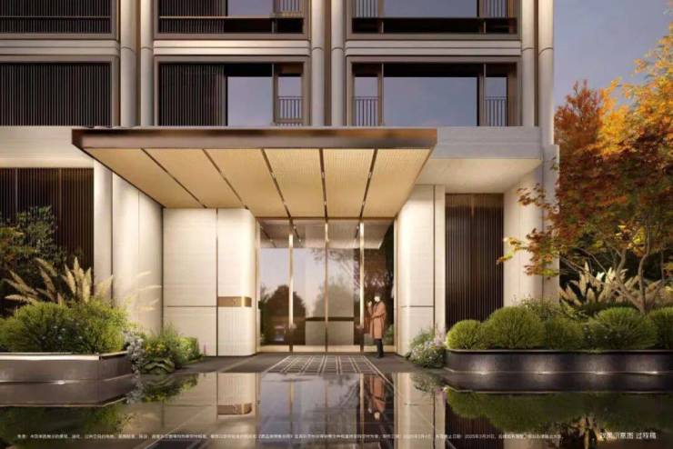 社区入口规划高逾四米的石材景墙,揉石成缎,还原风的褶皱。极致匠心