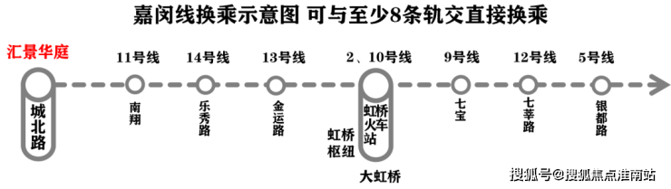 而通过直线距离仅约200米的嘉闵线城北路站(在建),3站可达南翔,8站可达虹桥!