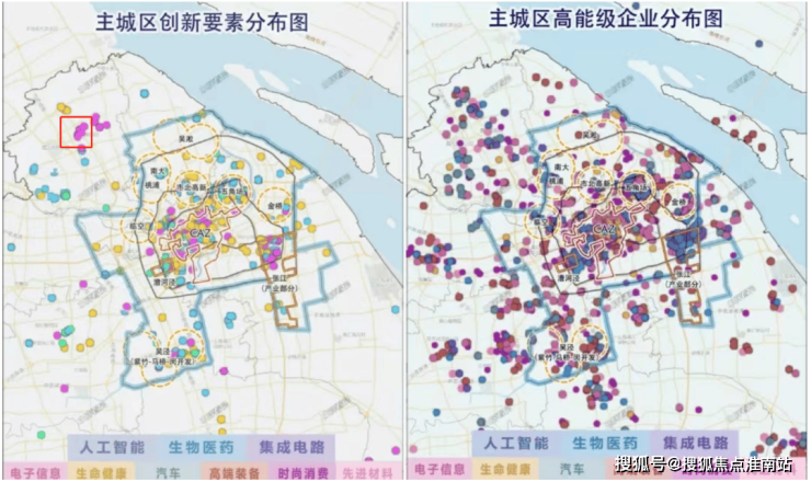 如下图所示,嘉定北的创新要素(高校+科研院所)在五个新城中是非常密集的。