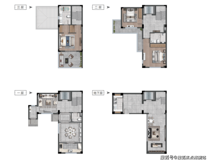 而且从面积看是偏舒适型的,从地下室到庭前绿地再到露台等,功能丰富,能装下一大家庭的生活场景。