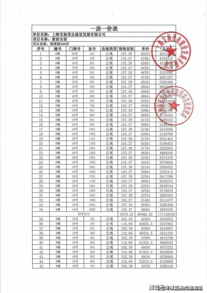 一房一价表发布!