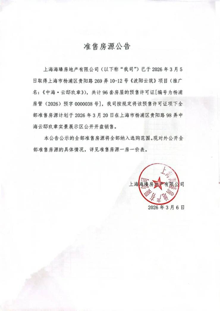 中海云邸玖章 官方售楼处咨询与预约公告(2026 最新真实版)