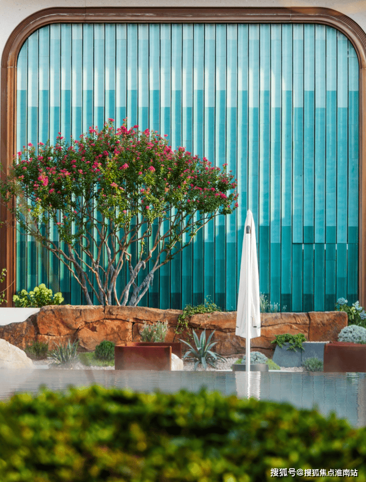 未来, 水系穿行于约800㎡的下沉庭院之间,场景之中,水、灯、石、树、墙等等装饰元素有机结合,每一种 细节元素背后,都有各自所代表的符号语言。