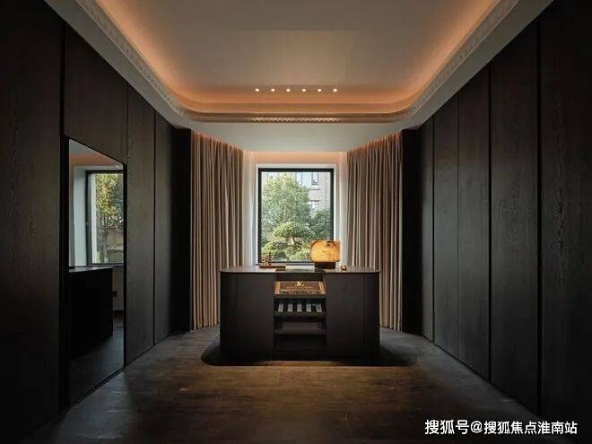 二楼以“地理基因”重构空间脉络,北车库-净衣间-书廊-南露台形成物理动线,并实现“归家-更衣-休憩”的状态切换。北侧车库植入衣物护理系统和丰富的收纳系统,解决回家时多样化的调整场景。父母卧房东西两侧独立安置,更符合老年人的睡眠习惯。