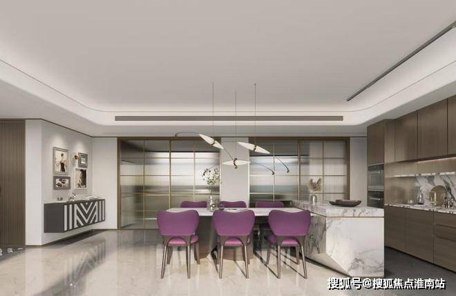 在客厅另一侧,连接客厅和厨房的岛台,LDKG一体化,进一步放大整个空间社交属性。营造N+种居家与聚会场景,让横厅的社交属性得到充分放大。