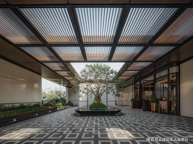 中庭的大树剧场,移植了超60年树龄的铁冬青 ,价值百万;保利虹桥和著售楼处电话:400-891-9910✔✔✔