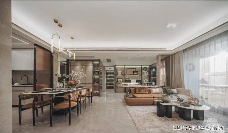这会导致各个空间的尺度感都会更宽绰,尤其是餐厅,可以放一个容纳6-8人的餐桌,可供一家人享受天伦之乐。