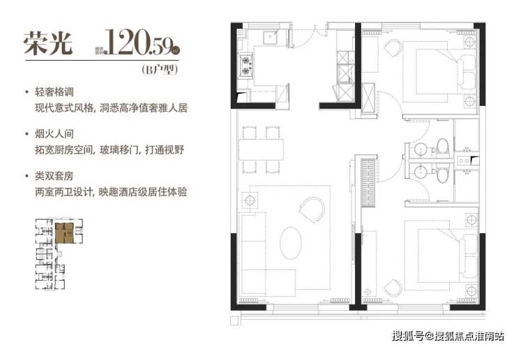 B|荣光|建面约120.59m²|两室两厅一厨两卫
