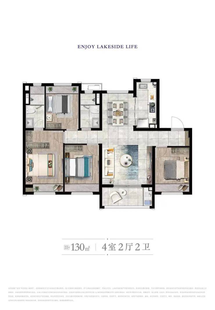 建面约130㎡四房两厅两卫(改善优选,空间宽敞)