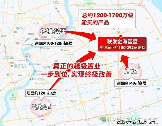 而放眼上海外环其他板块,价格差距更为突出:以区位相近的浦东新杨思、浦东唐镇为例,同类新房项目单价普遍在7-9万元/㎡,1200-1700万级总价仅能买到120-140平的高层公寓,还多为高容积率的上一代住宅产品。相较之下,同样的总价在 容积率仅1.5 的联发·金海雲墅可以买到约168-183㎡的 新一代叠墅产品,实际得房面积更高达约180-292㎡, 性价比在整个外环改善市场中都堪称“天花板”!
