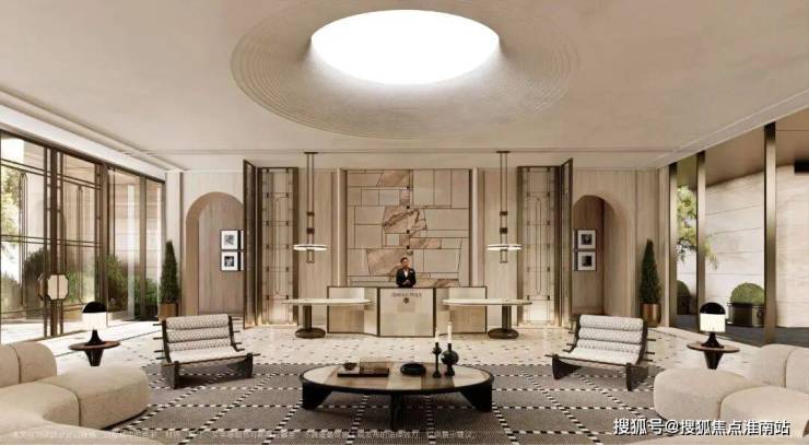 穿过墙面嵌有艺术装置的艺廊式巷道,暖光与石材肌理过滤掉外界喧嚣,再至落客大堂-迎宾大堂-归家大堂,这种 “层层递进” 的设计绝非炫技,而是在三大主题厅堂的空间转换中,完成身份与心境从 “职场精英” 到 “家庭主人” 的温柔过渡,回家路上的每一步都在卸下疲惫 。
