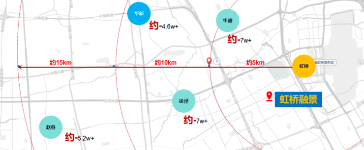 约1公里直线距离国家会展中心(数据来自百度地图测距,仅供参考),3公里内坐拥约11万方夏都小镇、约50万方蟠龙天地、约6.2万方虹桥天地、约43万方虹桥天街等超百万方商业地标IP配套,国际名校、科创产业、多维轨交、医疗配套等资源环绕。