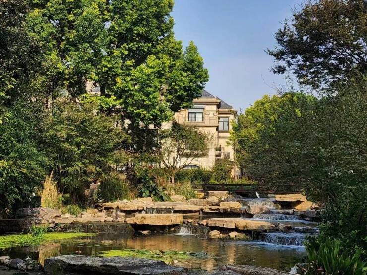 采用五重景观层层叠进,真石假山造景,承延墅区臻贵肌理的雅趣园林,引入自然河流,打造三面环水的滨水谧境,无界相融生态绿境,将社区、建筑、河流串联的相映成趣,自然围合,移步景异,营造极具魅力的惬意日常。