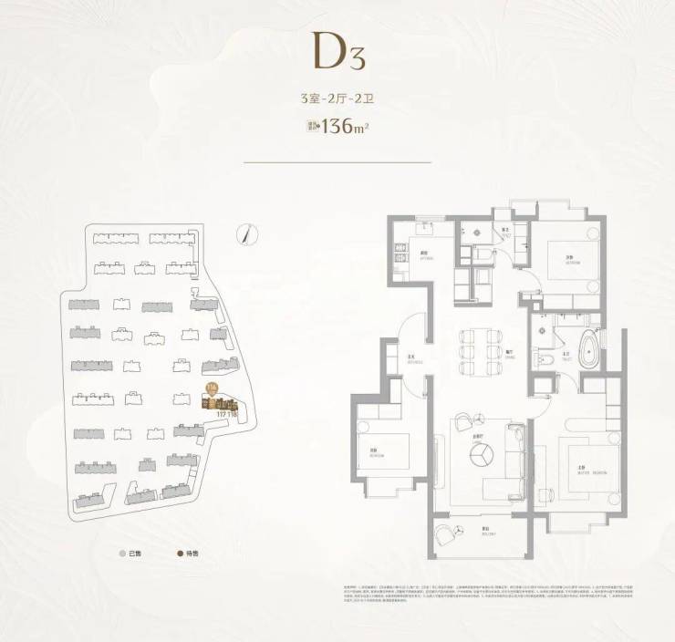 第二,建面约136㎡3房,爆款中的爆款。