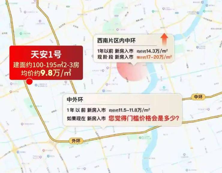 现阶段,上海西南片区中外环间的价格已经来到了大概约11.3-11.8万/㎡的层次。